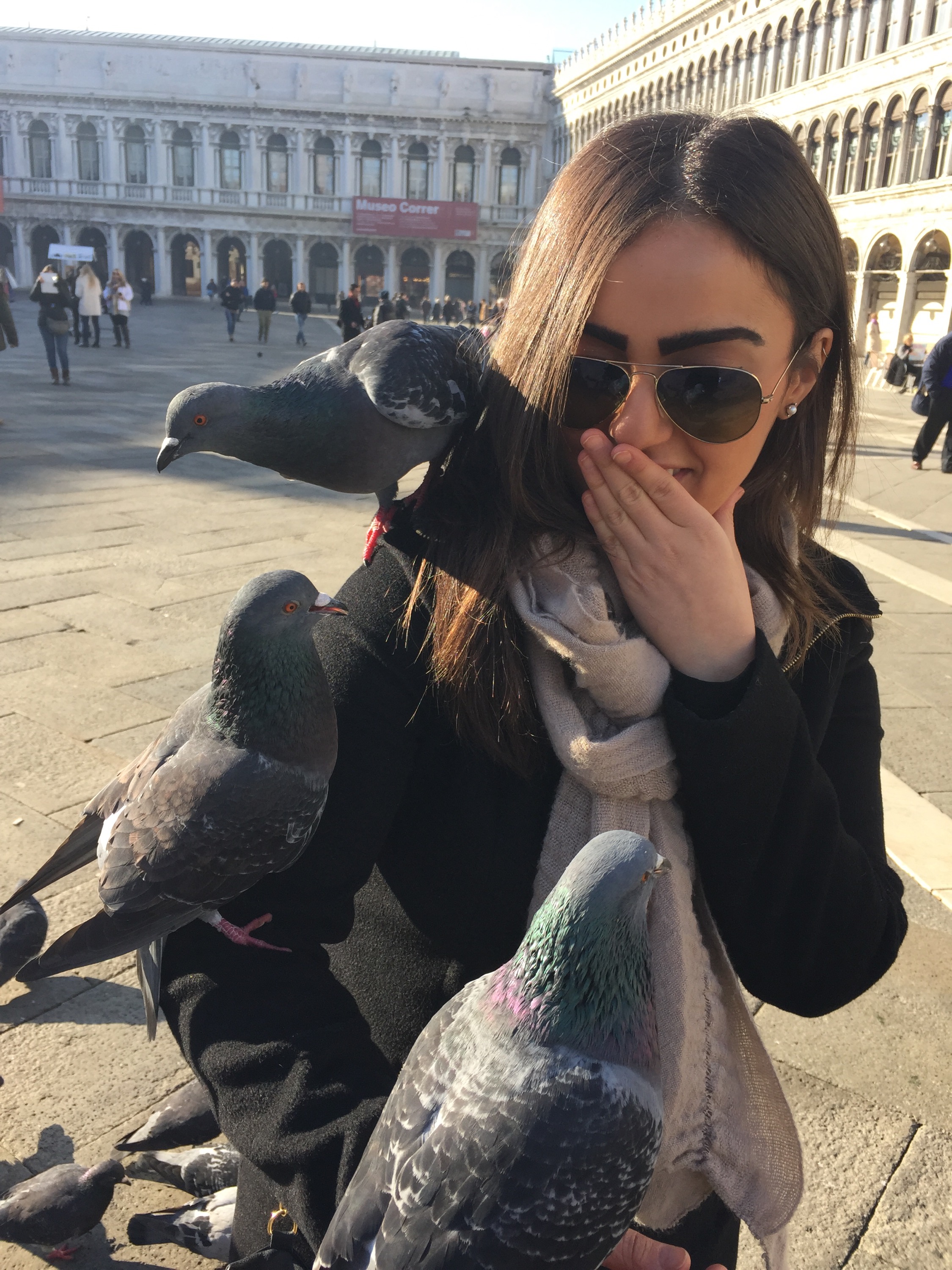 Today I spent the day all around Venice and Piazza San Marco. There, I fed pigeons pretzel sticks, froze all of my limbs, and strolled next to the gondolas. I also learned that in Venice, they take water taxi’s and water busses everywhere. And at night, once the sun sets, they are absolutely freezing!