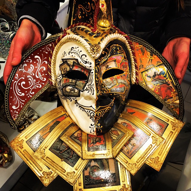 The last day in Venice was spent walking (no water bus this time!) from our hotel across the city to Piazza San Marco. To our destination of Rialto Bridge, the oldest bridge to cross the Grand Canal in Venice, it was a brisk 45 minute walk. Along the way we stopped at several authentic Venetian mask stores, where my friend Anthony set his eyes on the mask of his dreams, with a whopping price tag of €180 Euros. At one of the mask making shops, the friendly store owner and mask designer showed off his latest mask designs and preview for Carnevale with both me and my sister as his models. Once we reached Rialto Bridge, we stopped for photos and a casual chat with a store owner, where we learned that during Carnevale, it takes an average of forty minutes to cross the bridge, due to high traffic in numbers of pedestrians.
